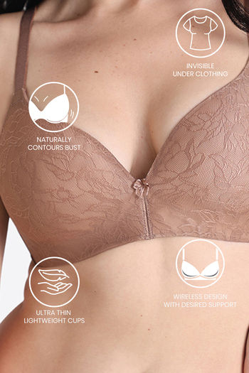 Wacoal Padded Non-Wired 3/4Th Coverage Lace Bra - Brown