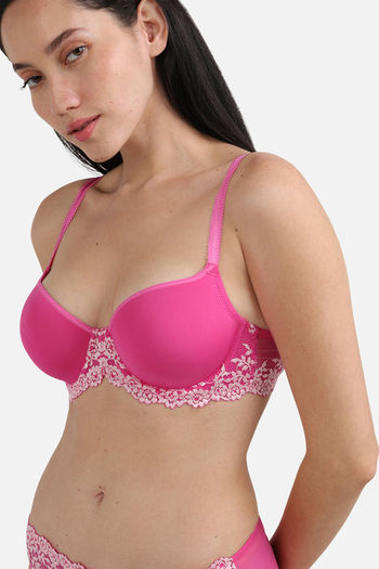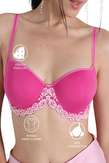 Wacoal Padded Regular Wired Medium Coverage Lace Bra - Dark Pink
