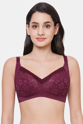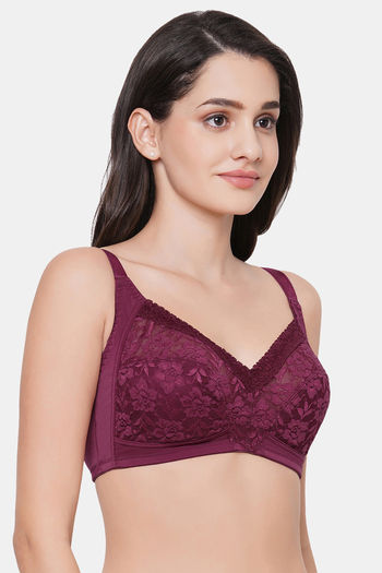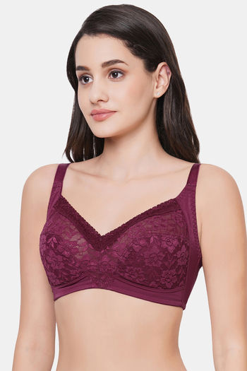 Wacoal Single Layered Non-Wired Full Coverage Lace Bra - Beaujolais