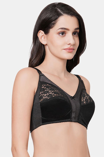 Wacoal Single Layered Non-Wired Full Coverage Lace Bra - Black