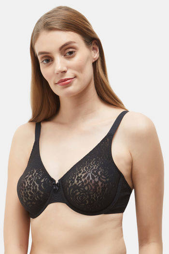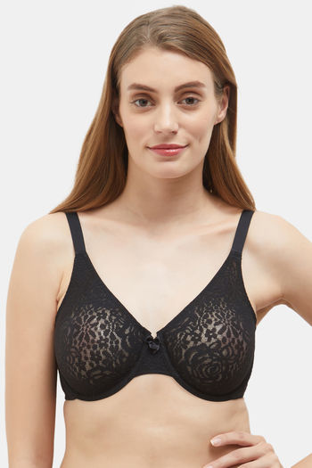 Wacoal Single Layered Wired Medium Coverage Lace Bra - Black