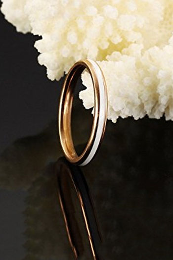 Yellow Chimes White Enamel Band Style Rose Gold Plating based 316L Stainless Steel Ring