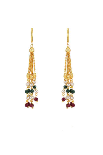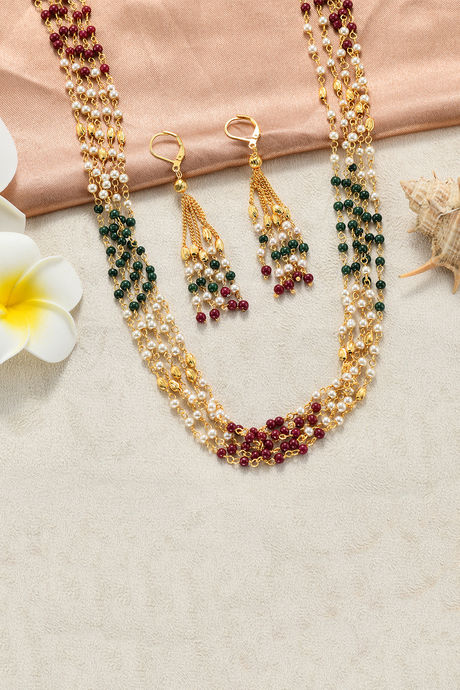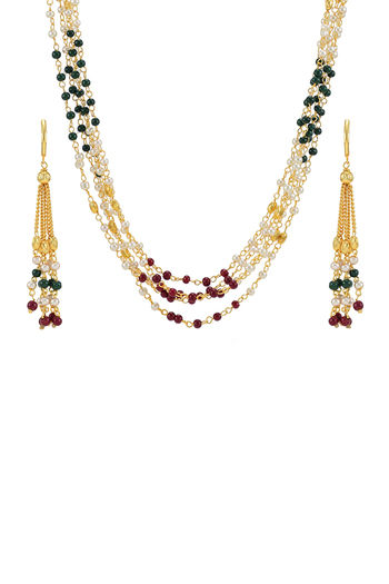 Yellow Chimes White Pearl Multi-Layer Gold Plated Traditional Long Chain Necklace Set