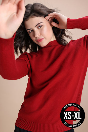 Zivame Retro Peek Full Sleeve Sweater - Red
