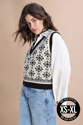 Zivame Retro Peek Sleeveless Sweater - Off White