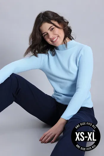 Zivame Retro Peek Full Sleeve Sweater - Sky Blue
