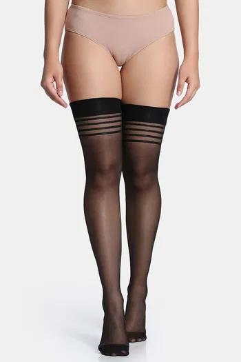 Sheer or transparent stockings simply add a layer of nylon covering on your legs in such a manner that your legs can still be seen. Transparent stockings can also be found in ultra-sheer and super-sheer variants and compliments your lingerie.