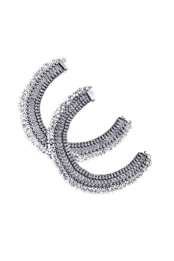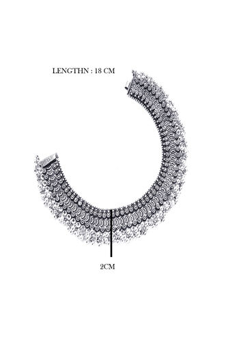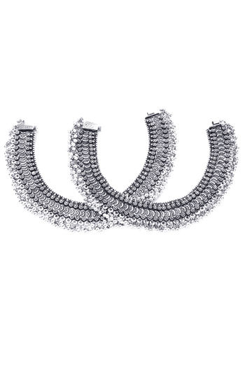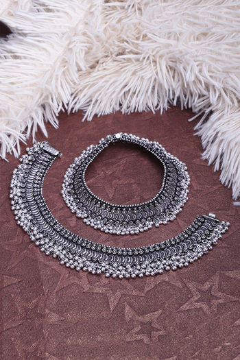 Yellow Chimes Classic German Silver Oxidised Antique Design Ghoongroo Beads Traditional Anklets