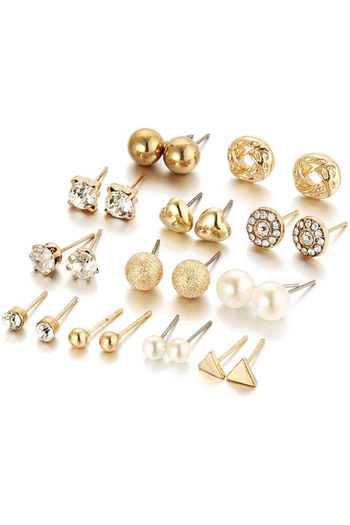 Youbella Girls/Women'S Gold Plated Combo Of 24 Stud Tops Earrings Jewellery (Golden)