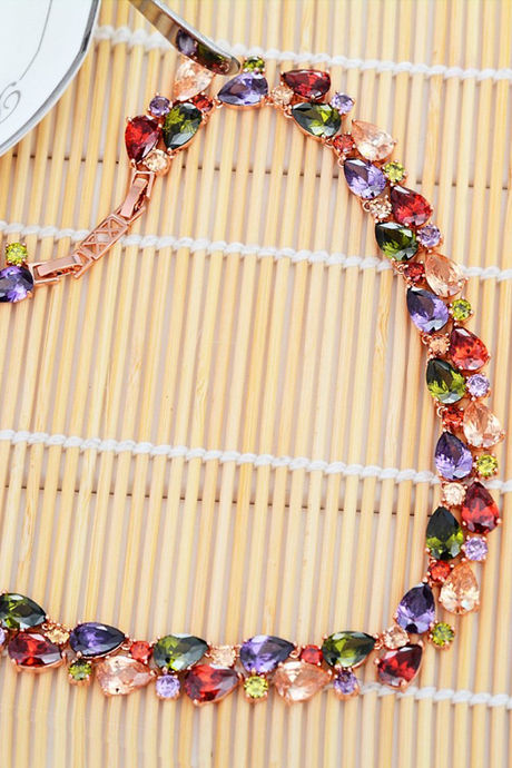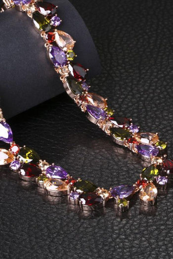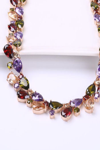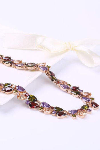 YouBella Multicolour Rose gold Fabric Stylish AAA Swiss Zircon Necklace Jewellery for Women and Girls
