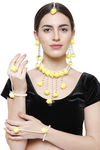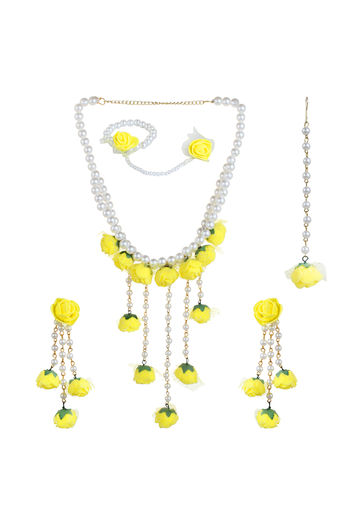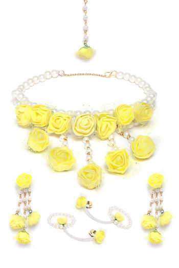 YouBella Stylish Latest Traditional Haldi Jewellery Pearl Jewellery Set for Women (Yellow)(YBNK_5542)