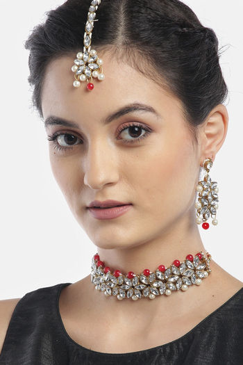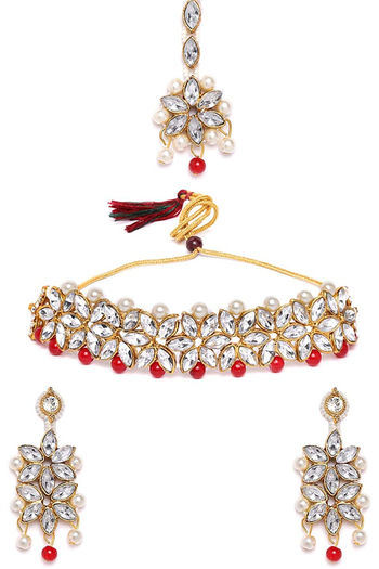 YouBella Stylish Latest Traditional Jewellery Gold Plated Jewellery Set for Women (Red)(YBNK_5535)