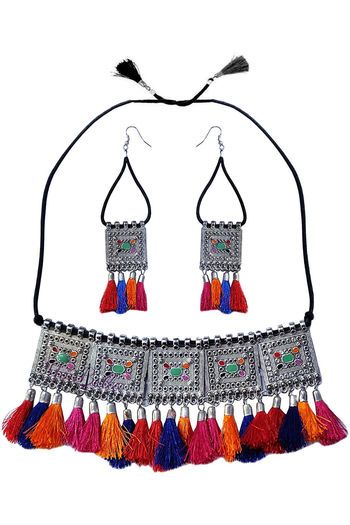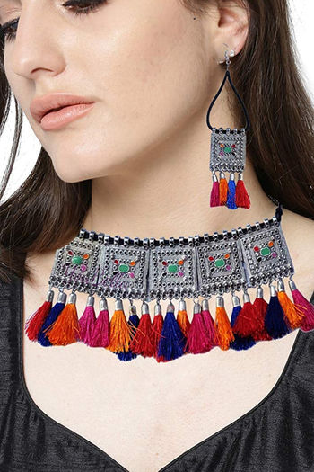 Youbella Stylish Latest Traditional Jewellery Silver Plated Jewellery Set For Women (Multi)(Ybnk_5514)