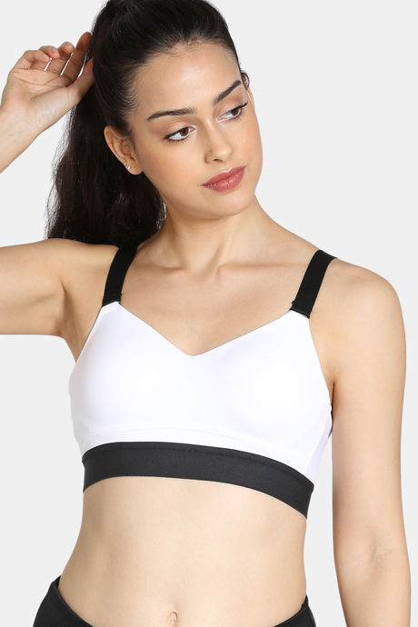 Zelocity High Impact Padded Wide Waist Band Sports Bra - White