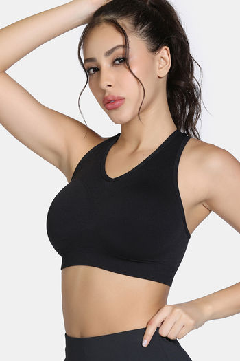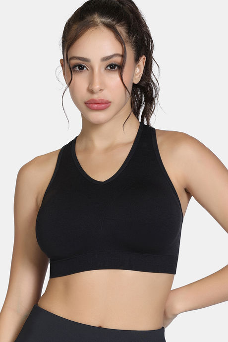 Zelocity Medium Impact Seamless Sports Bra - Jet Black
