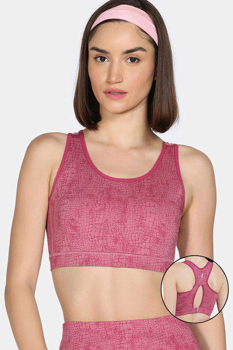 Zelocity Medium Impact Moisture Wicking Sports Bra with Removable Padding - Cashmere Rose