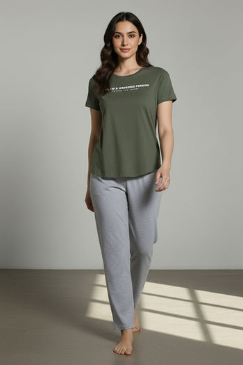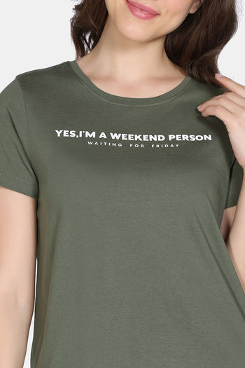Zivame 2 Mile Fashion Knit Cotton Lounge Top - Four Leaf Clover