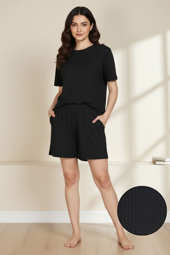 Zivame 2 Mile Fashion Knit Poly Short Set - Black Beauty