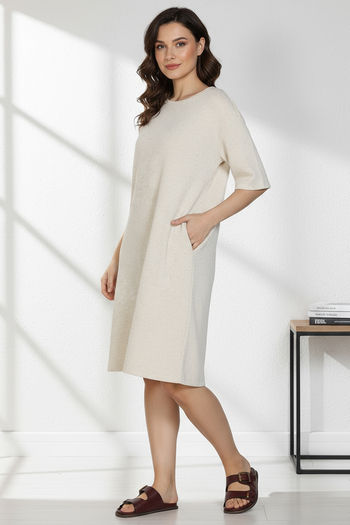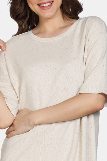 Zivame 2 Mile Fashion Knit Cotton Loungewear Dress - Marshmallow