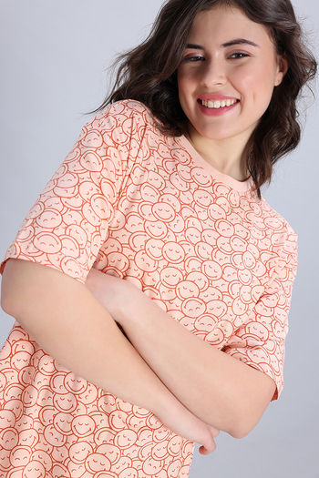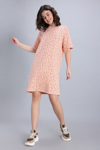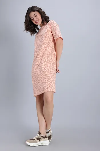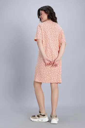 Zivame Smiley World 2 Mile Fashion Knit Cotton Loungewear Dress - Peach Parfait
