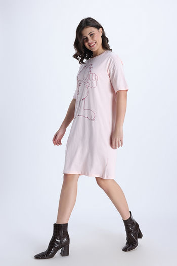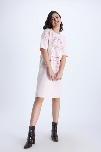 Zivame Garfield 2 Mile Fashion Knit Cotton Loungewear Dress - Pink Dogwood