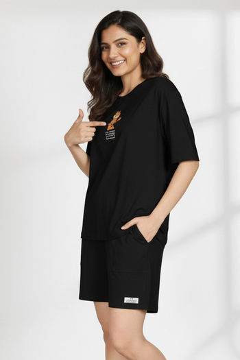 Zivame 2 Mile Fashion Knit Cotton Loungewear Set - Black Beauty