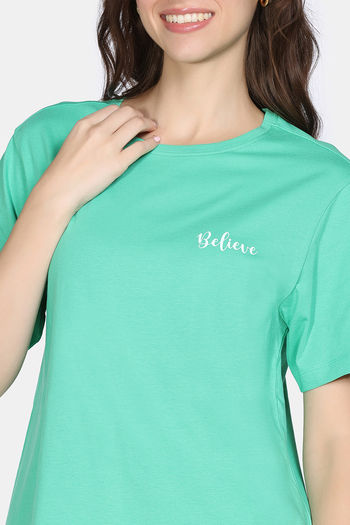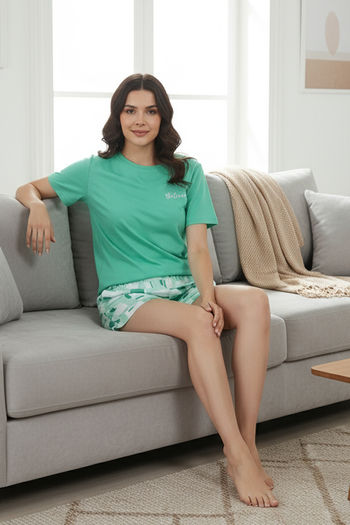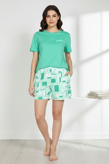 Zivame 2 Mile Fashion Knit Cotton Loungewear Set - Brook Green