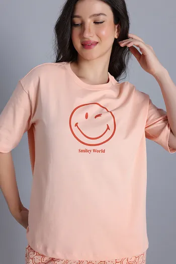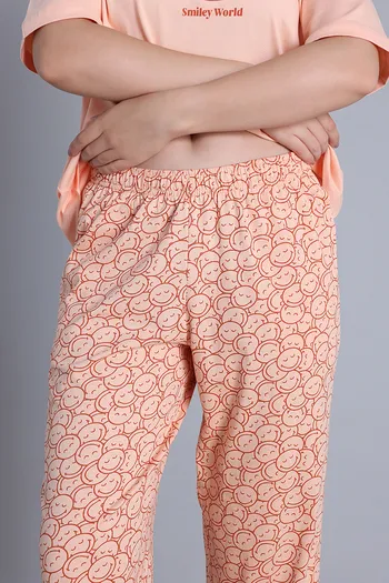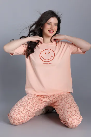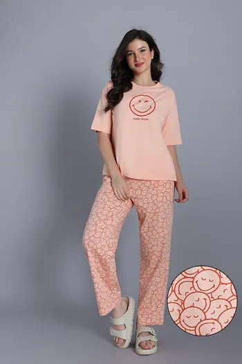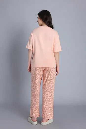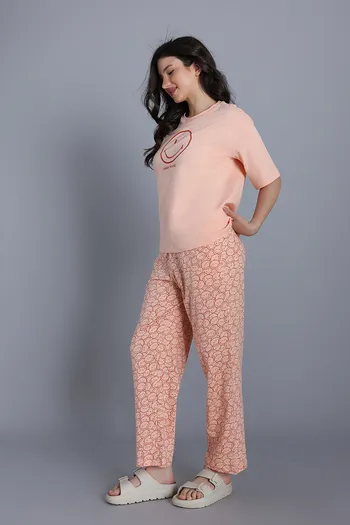 Zivame 2 Mile Fashion Knit Cotton Loungewear Set - Peach Parfait