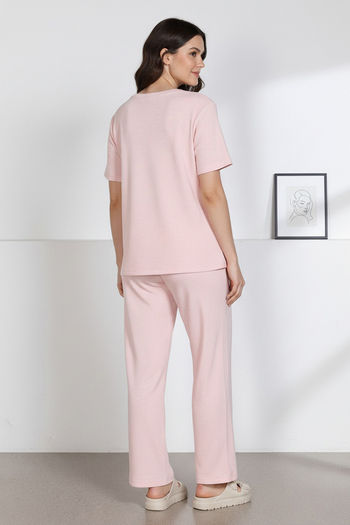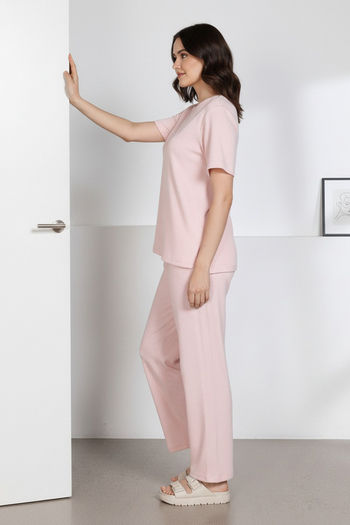 Zivame 2 Mile Fashion Knit Cotton Loungewear Set - Pink Dogwood