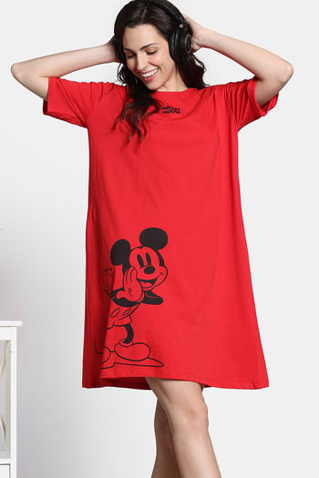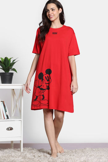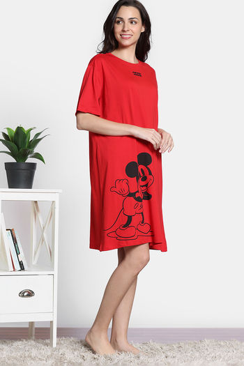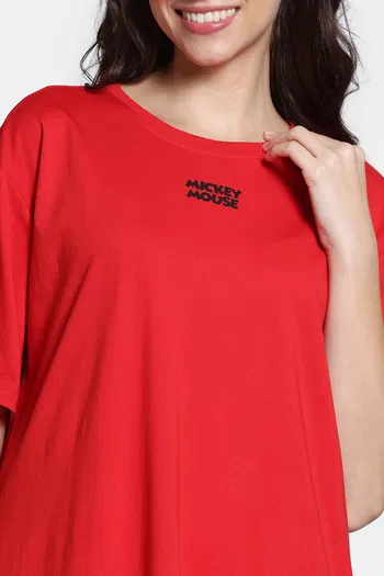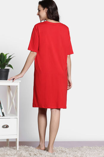 Zivame 2 Mile Fashion Knit Cotton Oversized Knee Length Loungewear Dress - High Risk Red