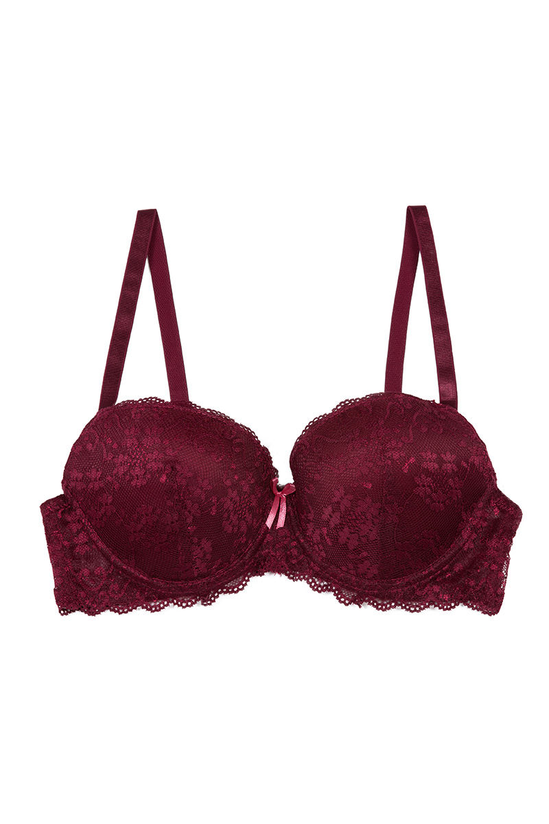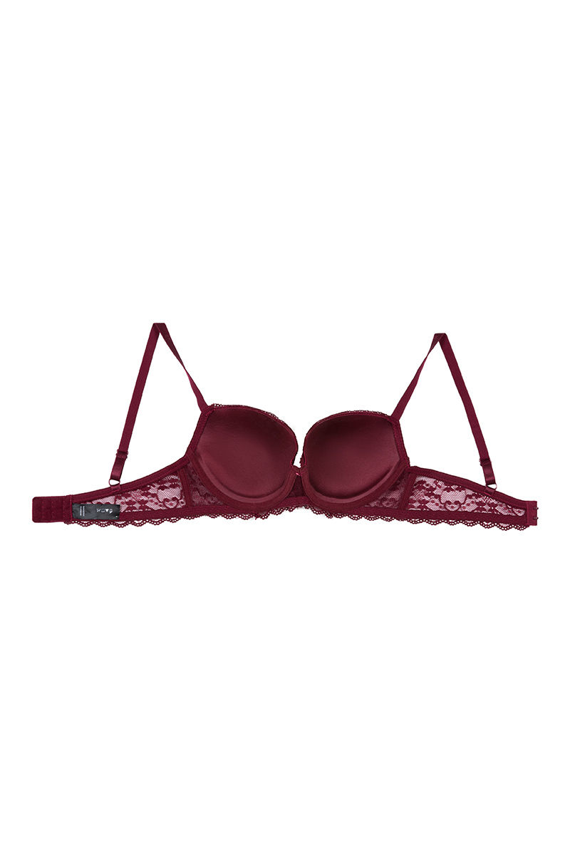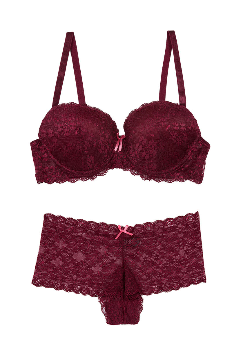 Zivame All That Lace Gentle Pushup Bra With Sheer Cheeky Panty- Burgundy