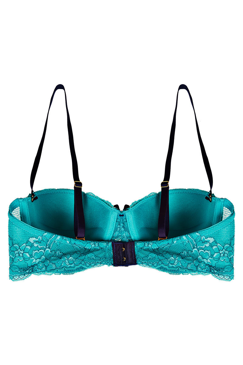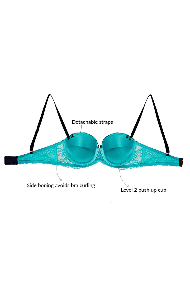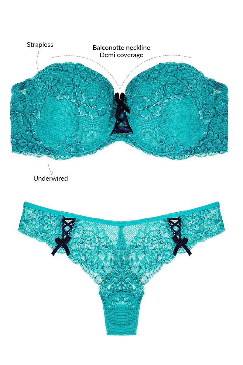 Zivame All That Lace Moderate Pushup Strapless Bra Wih Sheer Thong Panty-Blue
