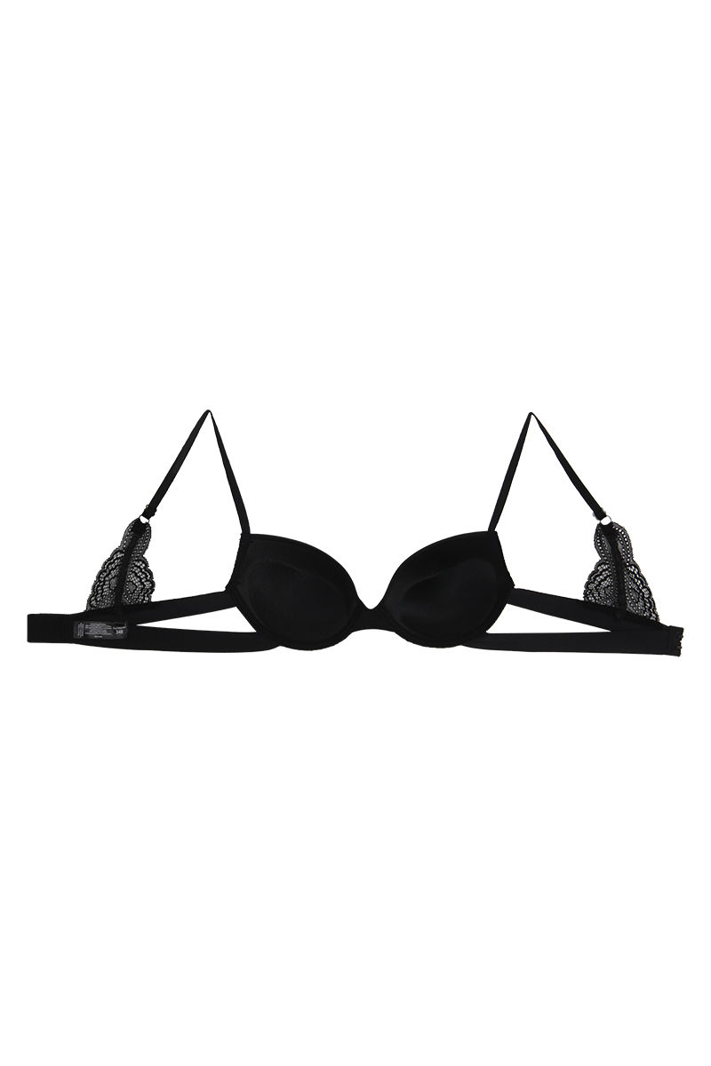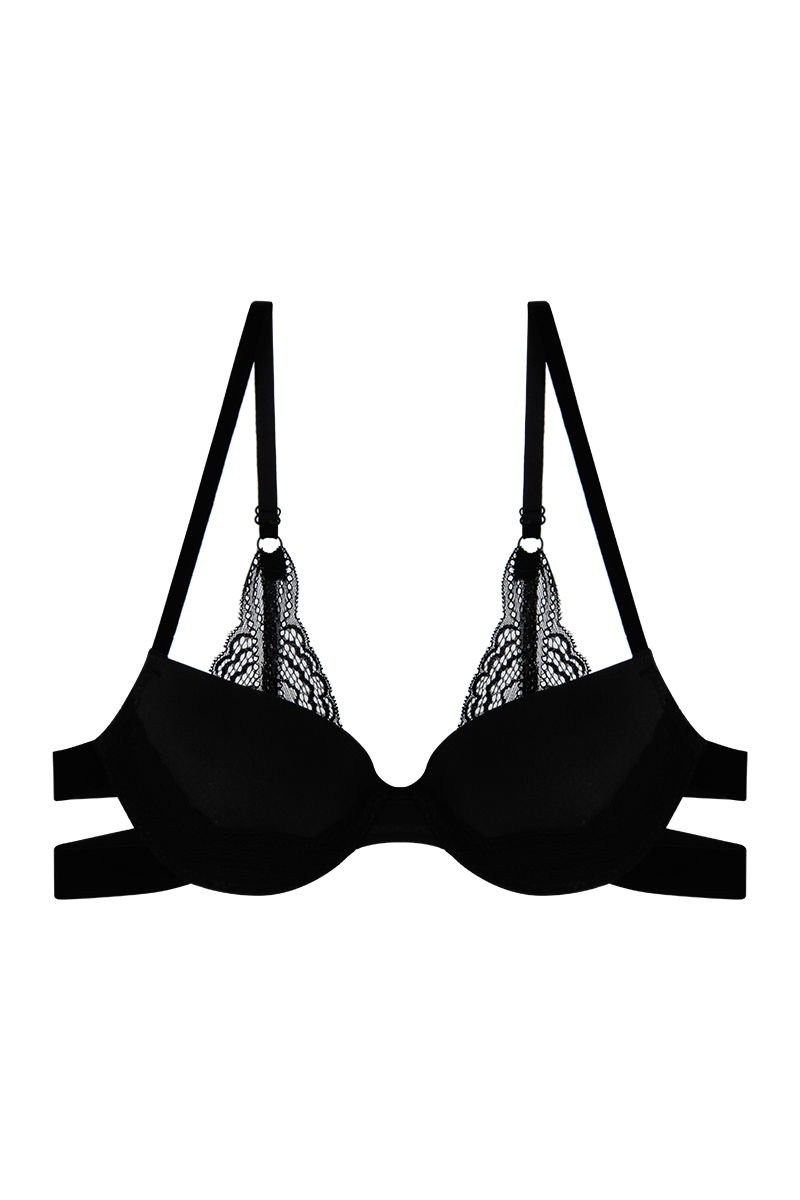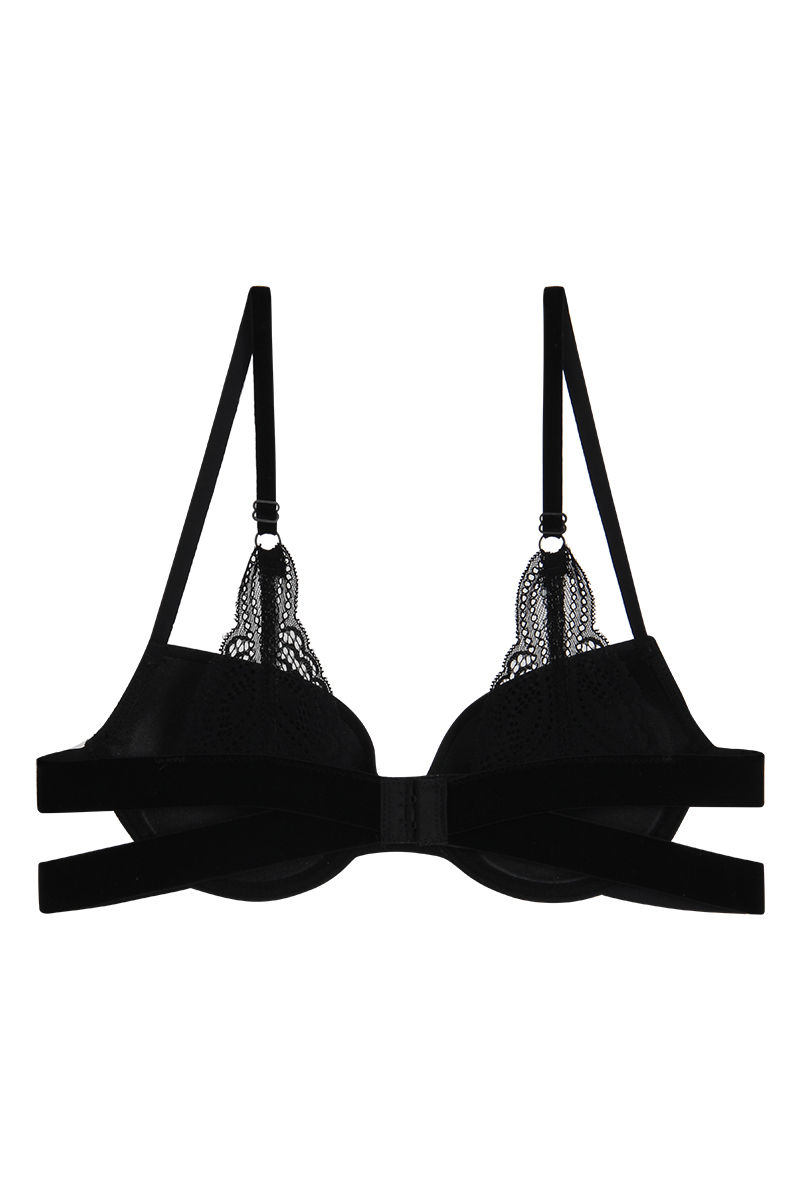 Zivame Anti Dig Lace Pushup Bra with Bikini Panty- Black