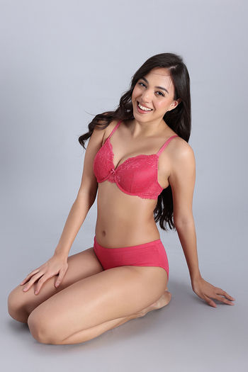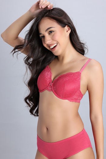 Zivame Dreamcatcher Padded Regular Wired 3/4th Coverage Lace Bra - Claret Red