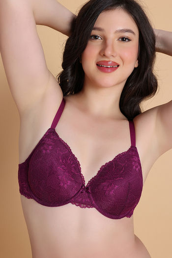 Zivame Dreamcatcher Padded Regular Wired 3/4th Coverage Lace Bra - Dark Purple