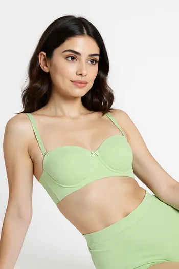 Zivame Beautiful Basics Padded Wired 3/4th Coverage Strapless Bra - Jade Lime