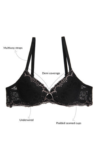 Zivame Beautiful Basics Push Up Wired Low Coverage Bra-Black Print