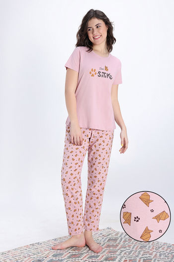 Zivame Farm Lore Knit Cotton Pyjama Set - Peaches