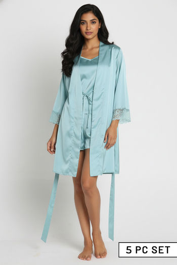 Buy Zivame Luxe Satin 5 Pc Sleep Set - Mist Green