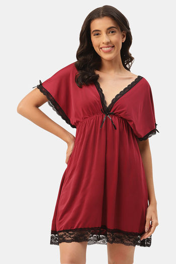 Nightdress or nighty - an easy-fit comfortable dress in soft fabrics, for lounging or sleeping.