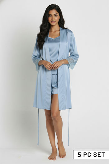 Buy Zivame Luxe Satin 5 Pc Sleep Set - Windward Blue