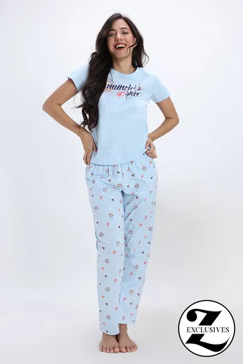 Buy Zivame Farm Lore Knit Cotton Pyjama Set - Nantucket Breeze