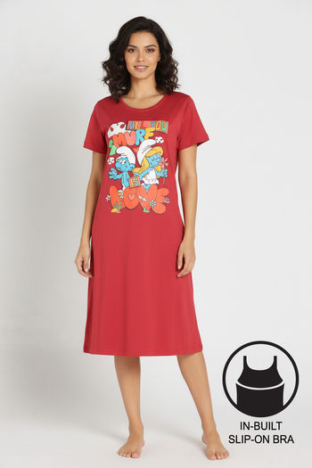Buy Zivame Knit Cotton Mid Length Nightdress - Salsa