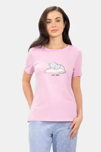 Buy Amante Scoop Neck Sleep Tee - Lazy Days Print