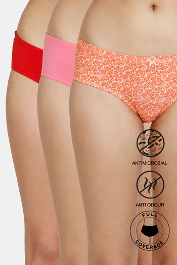 Buy Zivame Anti-Microbial Low Rise Full Coverage Hipster Panty (Pack of 3) - Multicolor