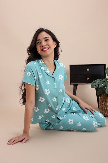 Buy Zivame Farm Lore Knit Cotton Pyjama Set - Pampas