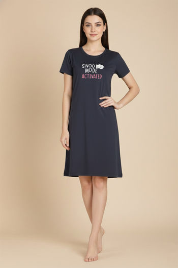 Buy Zivame Knit Cotton Knee Length Nightdress - Folkstone Grey
