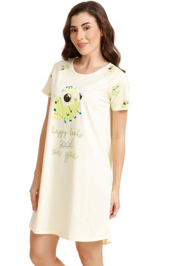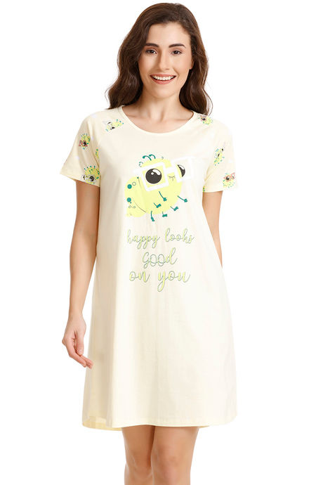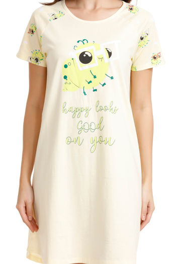 Zivame Bugs Life Cotton Short Length Nightdress - Yellow