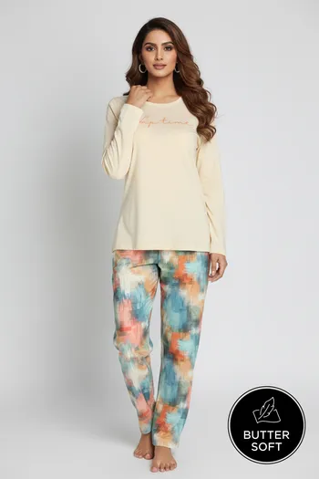 Zivame Buttersoft Knit Poly Pyjama Set - Ethereal Green
