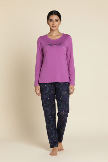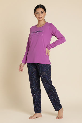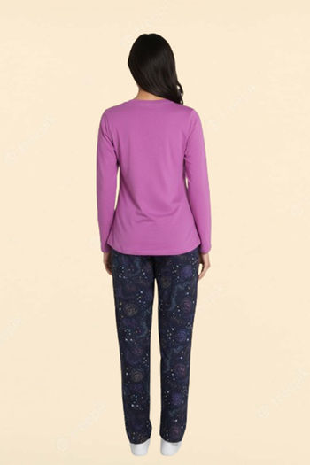 Zivame Buttersoft Knit Poly Pyjama Set - Evening Blue